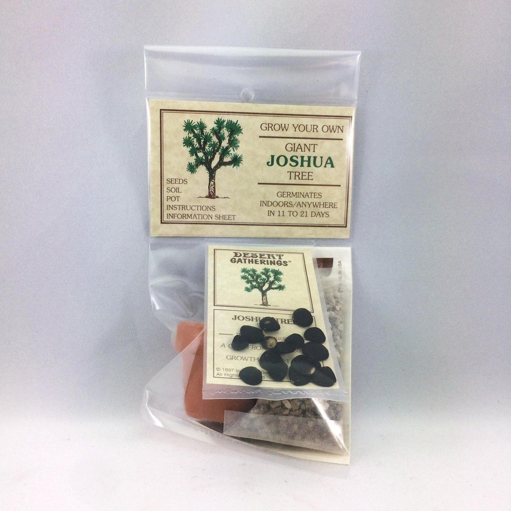 Grow your very own giant Joshua Tree with this special kit. Includes Joshua Tree seeds, soil, clay pot, instructions, and an information packet. Germinates indoors/anywhere in 11 to 21 days. Compact and lightweight design makes this perfect for store display.